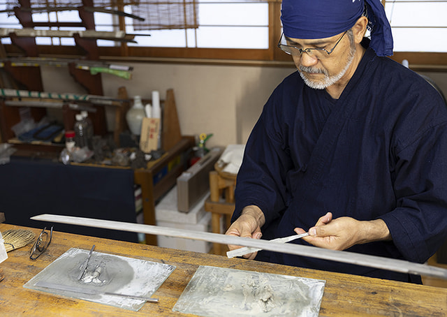 世界で最もよく切れる刃物でありながら、宝石のように美しい日本刀は、強さと美しさを備えた世界最高の刃物で、その製作技術は非常に高度で特殊です。廃刀令など何度か危機はありましたが、今日までその技術が伝わっているというのは奇跡だといえるでしょう。日本刀を外装まで完成させるには、刀匠以外に、研ぎ師、鞘師、金工師、塗師、柄巻師などが必要で、日本の職人技を総動員しなくてはいけません。まさに、世界に誇れる日本の工芸技術です。生活苦による職人の減少、鞘用の朴の木や天然砥石、国産漆の減少など、技術を伝えていくのは困難になりつつありますが、伝えていかないといけない大切な技術だと思います。