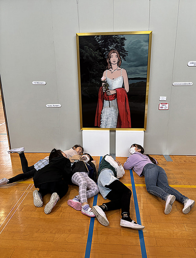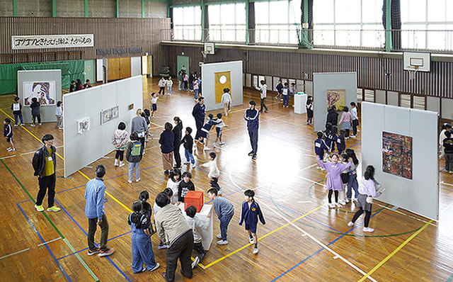 1日で完結させるのは、作品を一晩置くと学校側が保管の責任を負うことになり、負担が大きいためです。費用の面もあり、現在は関東近郊の小中学校が中心ですが、条件が整えば遠方での出張展示も行っています。学校は子どもたちにとっては、ホームの空間。リラックスして鑑賞できる分、美術館とは違う反応が生まれると感じます。