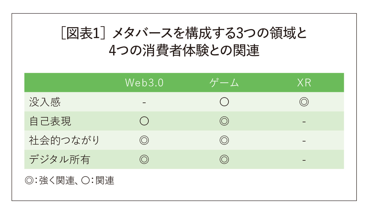 本記事では、複雑な「メタバース」を理解するため、3つの領域と4つの消費者体験という枠組みで整理した。